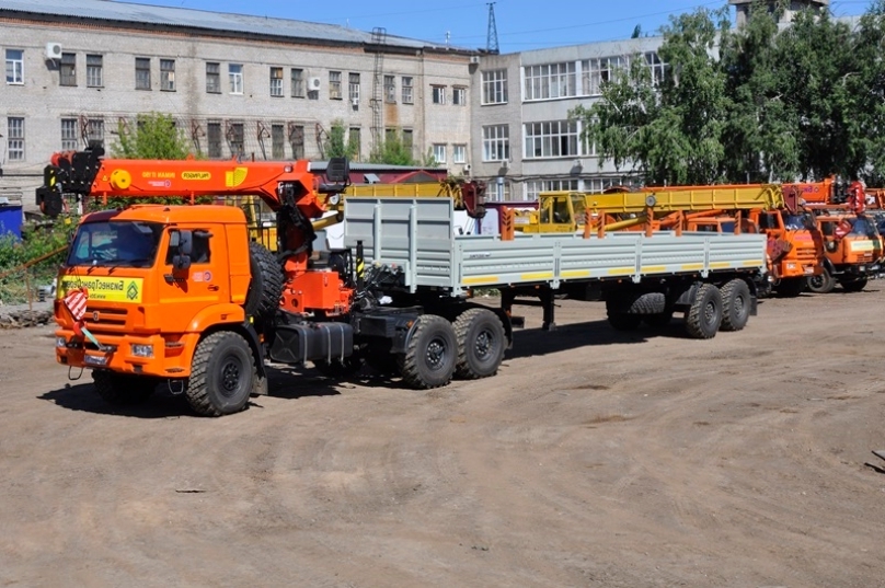 Это кран манипуляторы на базе КАМАЗА 43118 с КМУ Инман ИТ – 150, 180 с 12 метровыми полуприцепами. Отличительной чертой полуприцепов является наличие раздвижных коников, возможность полного снятия бортов, что позволит компании использовать их для перевозки в качестве трубовозов и перевозки негабаритных грузов по ширине. Грузоподъемность стрелы 7 т с вылетом 18м позволит Клиентам компании выполнять погрузо-разгрузочные работы с улучшенным качеством.